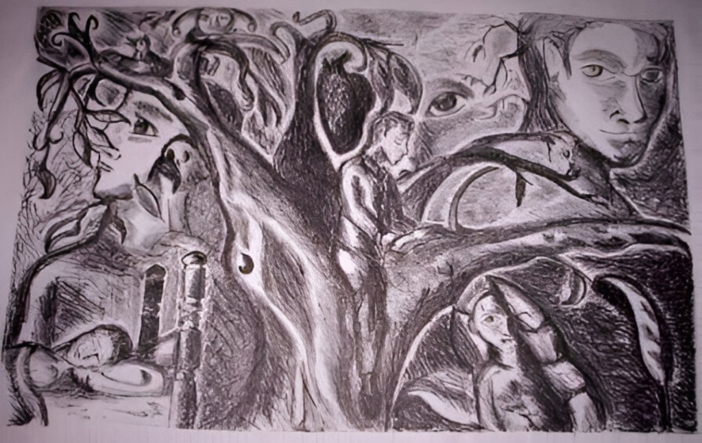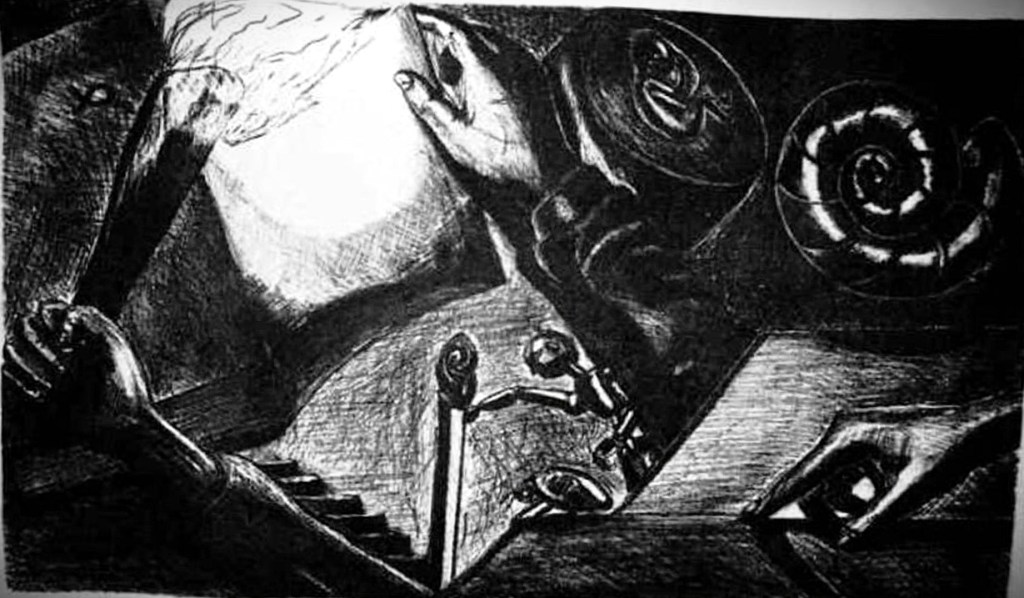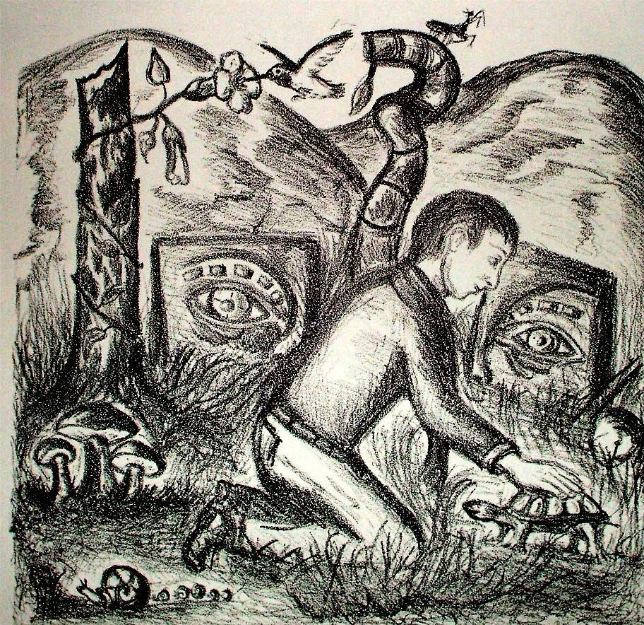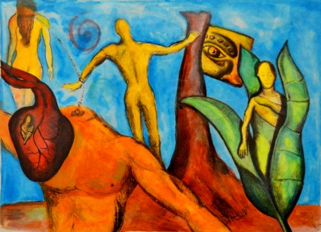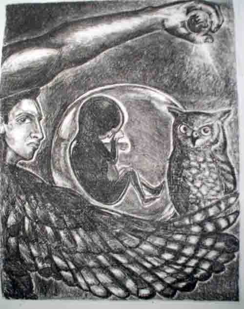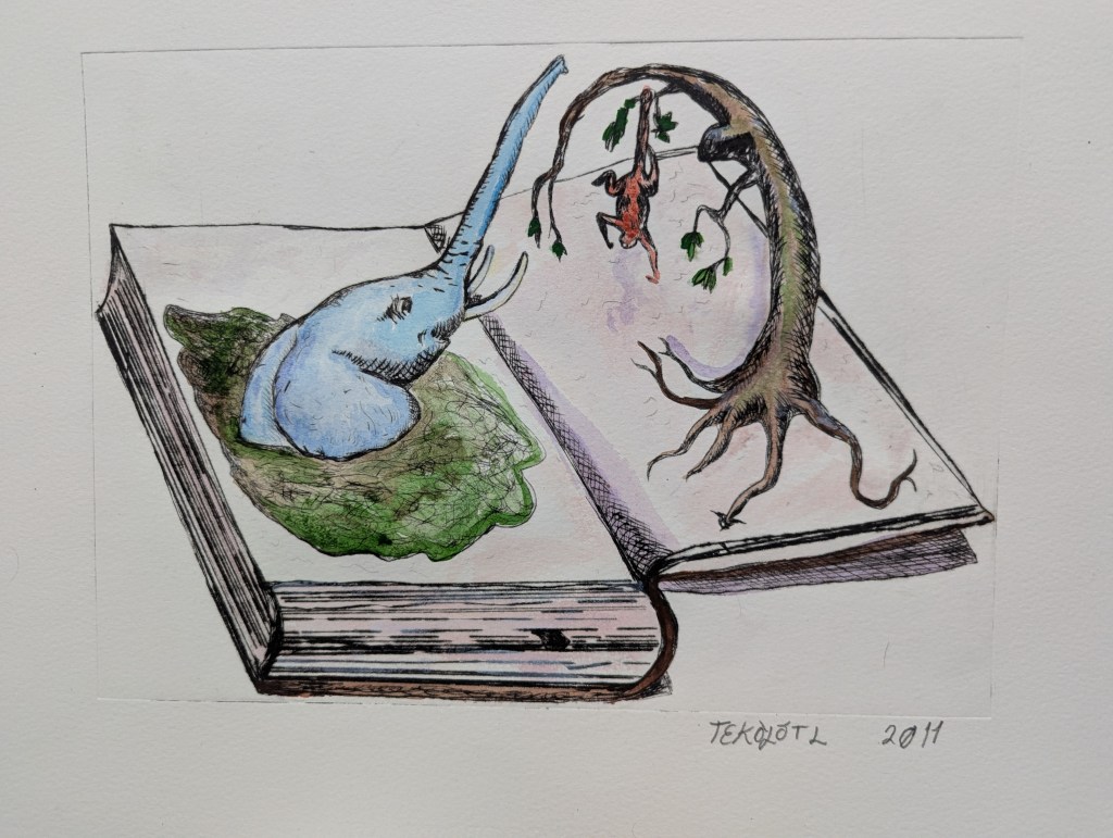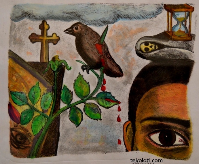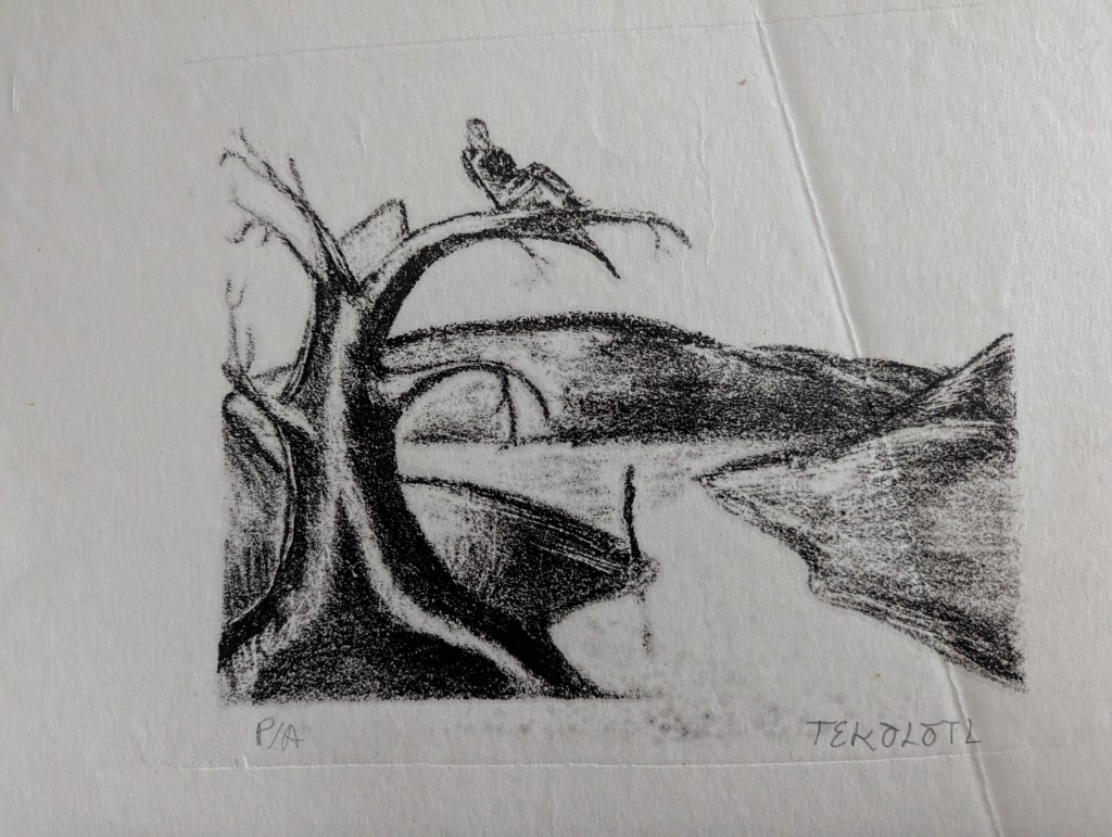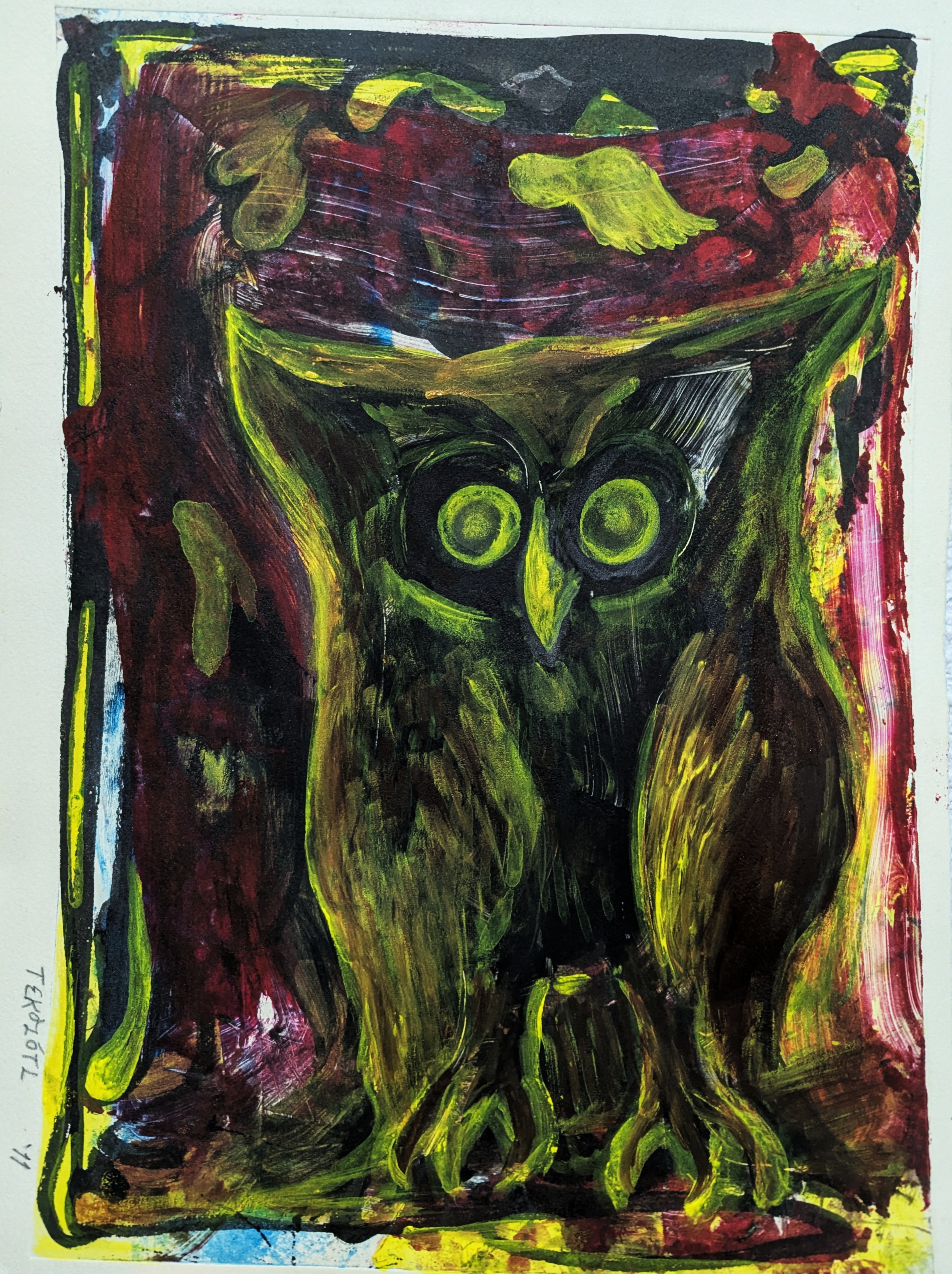 Tekolotl, grabado experimental y acrilico