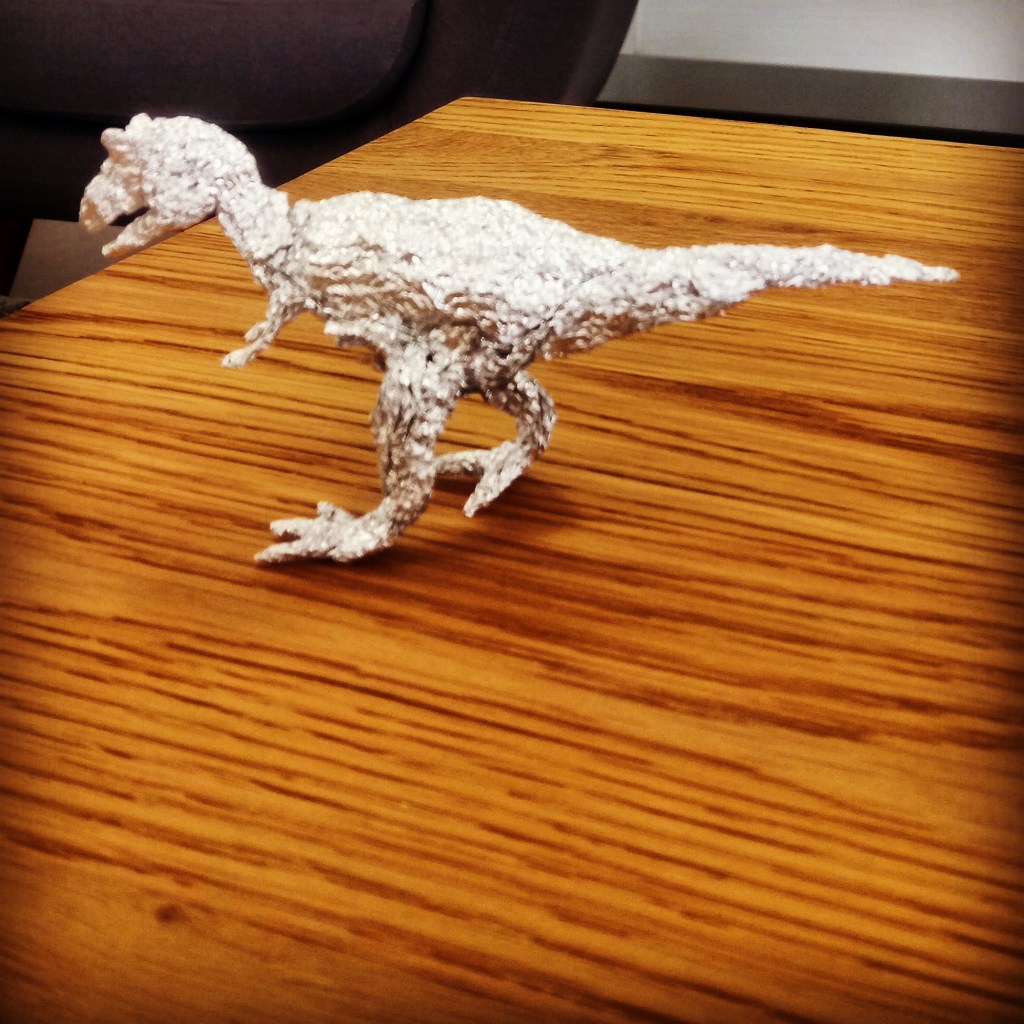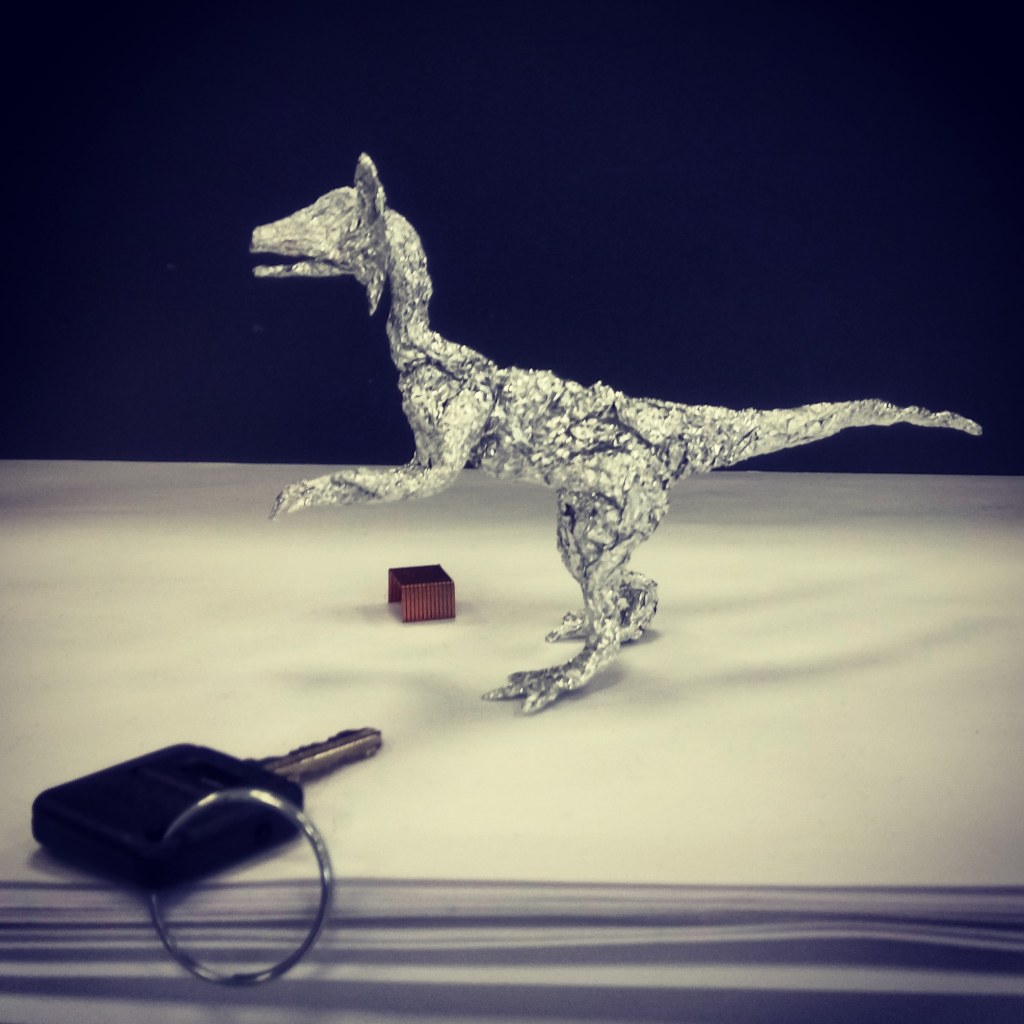 Megaraptor, Junto con obras de grandes artistas como Chillida, Giacometti, Tàpies y Dalí.